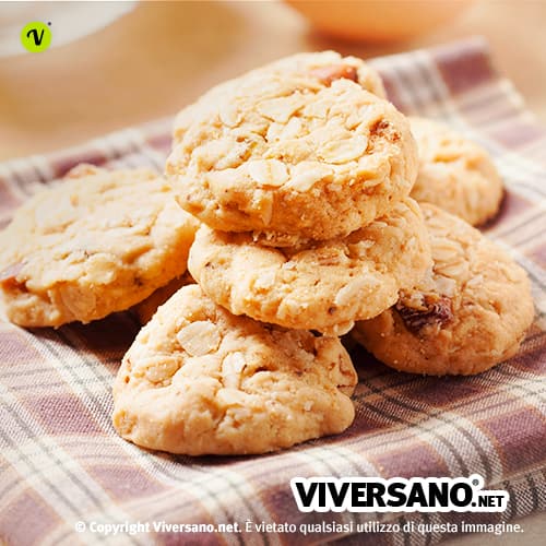 Nella ricetta abbiamo inserito l’uvetta per dolcificare in modo naturale attraverso gli zuccheri della frutta, non si sentirà la mancanza dello zucchero! Abbiamo scelto inoltre la farina integrale, che rende i biscotti più rustici, saporiti e soprattutto più salutari. Questi biscotti sono quindi ideali per chi ha scelto un’alimentazione vegana, ma anche per chi soffre di intolleranze al lattosio o alle uova, o, ancora, sono perfetti per le persone che vogliono concedersi uno sfizio senza esagerare con grassi e calorie.