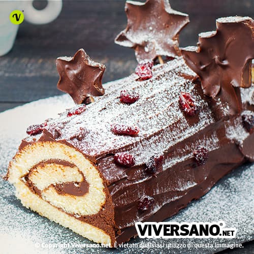 La ricetta può essere preparata durante le feste di natale, magari per una cena con gli amici. Ma può essere proposta anche il resto dell’anno, magari sotto forma di semplice rotolo. Nella ricetta del tronchetto di Natale, useremo il cioccolato fondente sia per la crema che farcisce e ricopre il tronchetto, sia per fare delle decorazioni. Questa ricetta è indicata per le persone vegetariane e per gli intolleranti al lattosio, in quanto priva di latte e derivati. Una porzione di questo dolce corrisponde a circa 100 grammi e apporta 304 Kcal.