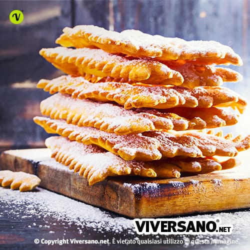 Le chiacchiere di carnevale sono conosciute anche con i nomi di sfrappole o frappe, a seconda delle regioni. La ricetta originale prevede che le chiacchiere siano fritte, ma noi abbiamo cercato di renderle più leggere e digeribili con la cottura al forno e con l’utilizzo dell’olio di semi di girasole invece che del classico burro.