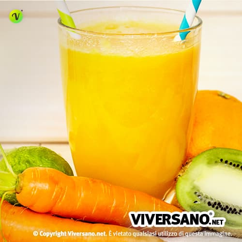 L’arancia e il limone sono ricchi di vitamina C, o acido ascorbico, che è un potente antiossidante ed è fondamentale anche per l’assorbimento intestinale del ferro. Le carote sono fonte di beta-carotene, un altro antiossidante precursore della vitamina A, responsabile della crescita e differenziazione cellulare e protettrice della vista. Il kiwi contiene moltissimi polifenoli e ha una quantità di vitamina C maggiore rispetto agli agrumi.