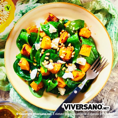 - Contorno sfizioso di zucca, spinaci, tofu e pinoli