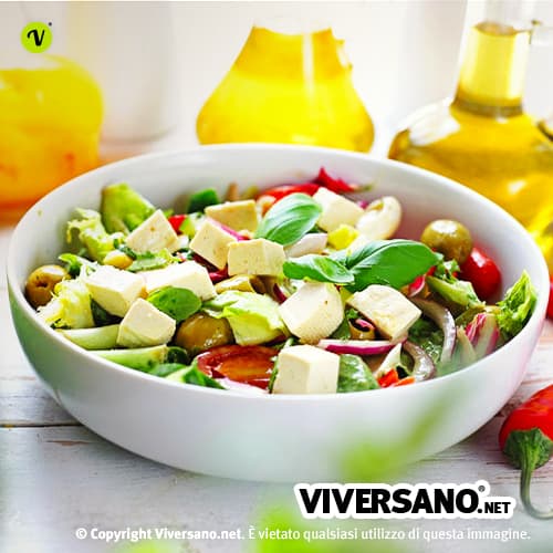- Insalata mista proteica con tofu, avocado, olive e verdurine