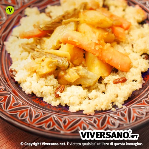 Questa ricetta a base di quinoa è perfetta per coloro i quali amano il cous cous mediorentale, ma preferiscono evitare il glutine. La quinoa, naturalmente priva di questa proteina, è un’ ottima alternativa alla semola di grano che al contrario la contiene. A base unicamente di ingredienti vegetali, questa ricetta è ideale per chi segue una dieta vegan. Vediamo cosa occorre e come prepararla in pochi minuti.
