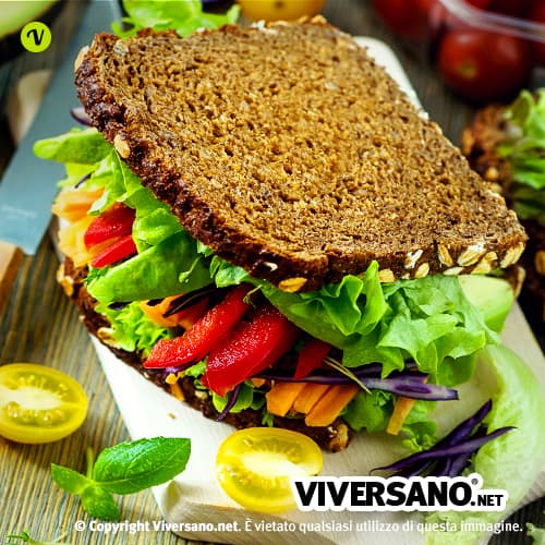 Il sandwich vegano con avocado e verdura fresca è un ottimo pranzo al sacco a patto che si scelgano verdure di stagione e pane integrale o semi-integrale. Resistete alla tentazione di acquistare un pane morbido pronto e provate a realizzare il pane in casa seguendo la nostra ricetta: otterrete dei panini soffici a base di farina integrale perfetti per un sandwich da spiaggia, da pranzo al sacco o da pic nic. Se invece il tempo stringe, acquistate un pane integrale prestando attenzione agli ingredienti.