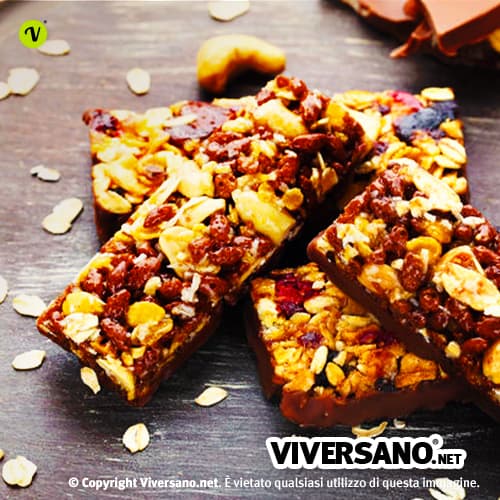 Questi ultimi, apportano anche zinco, selenio e fibra vegetale. Il riso soffiato dona alla ricetta un appropriato quantitativo di carboidrati, mentre l’aggiunta dei mirtilli e di un cioccolato fondente ad alta percentuale di cacao conferisce ad essa un gradevole contrasto di sapori.