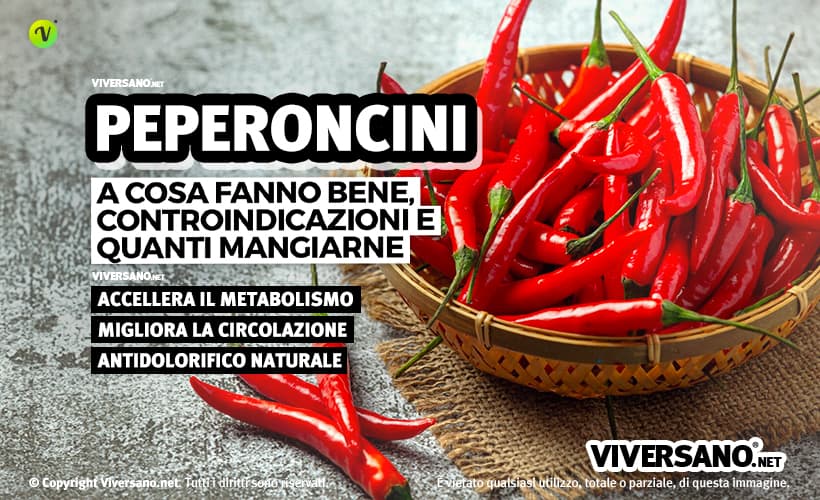 | Peperoncino | Vasodilatatore, analgesico, digestivo, tonificante e favorisce il controllo dell‘appetito: 1 mg di peperoncino abbassa la grelina, l’ormone della fame, aumentando il senso di sazietà |